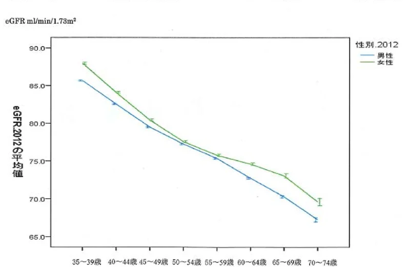2)日本人の年齢別推算糸球体濾過量(eGFR)の検討 ~協会けんぽ東京支部76万人の健診データから~ 渋谷区医師会・望星新宿南口クリニック 院長 高橋 俊雅 ら
