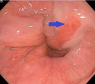 バレット食道は潰瘍を形成し、癌が発生することがあります。これをバレット食道腺癌といいます。ただこれは大変希で、本邦では食道に発生する癌のうち、1.6%ほどといわれています。1)