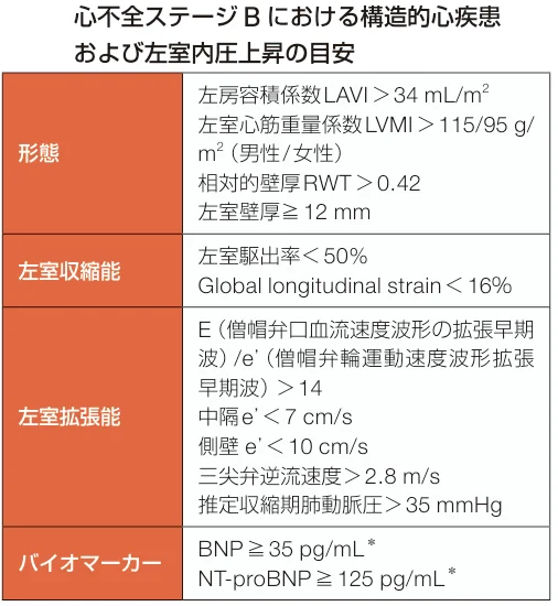 さらに状況が進むと、採血や心臓超音波検査など検査上の異常が出現してきます(ステージB 前心不全)。